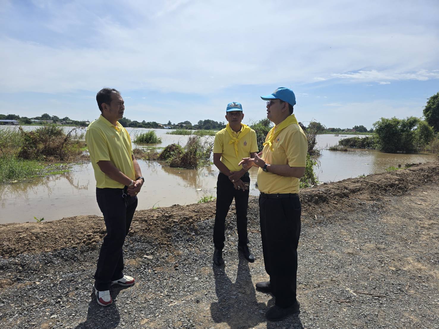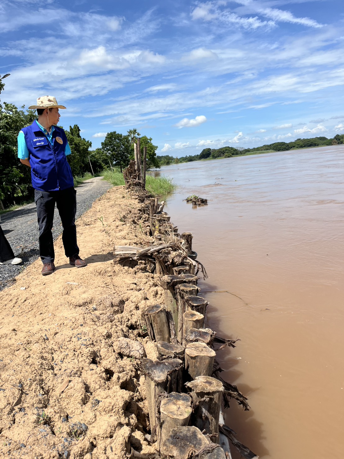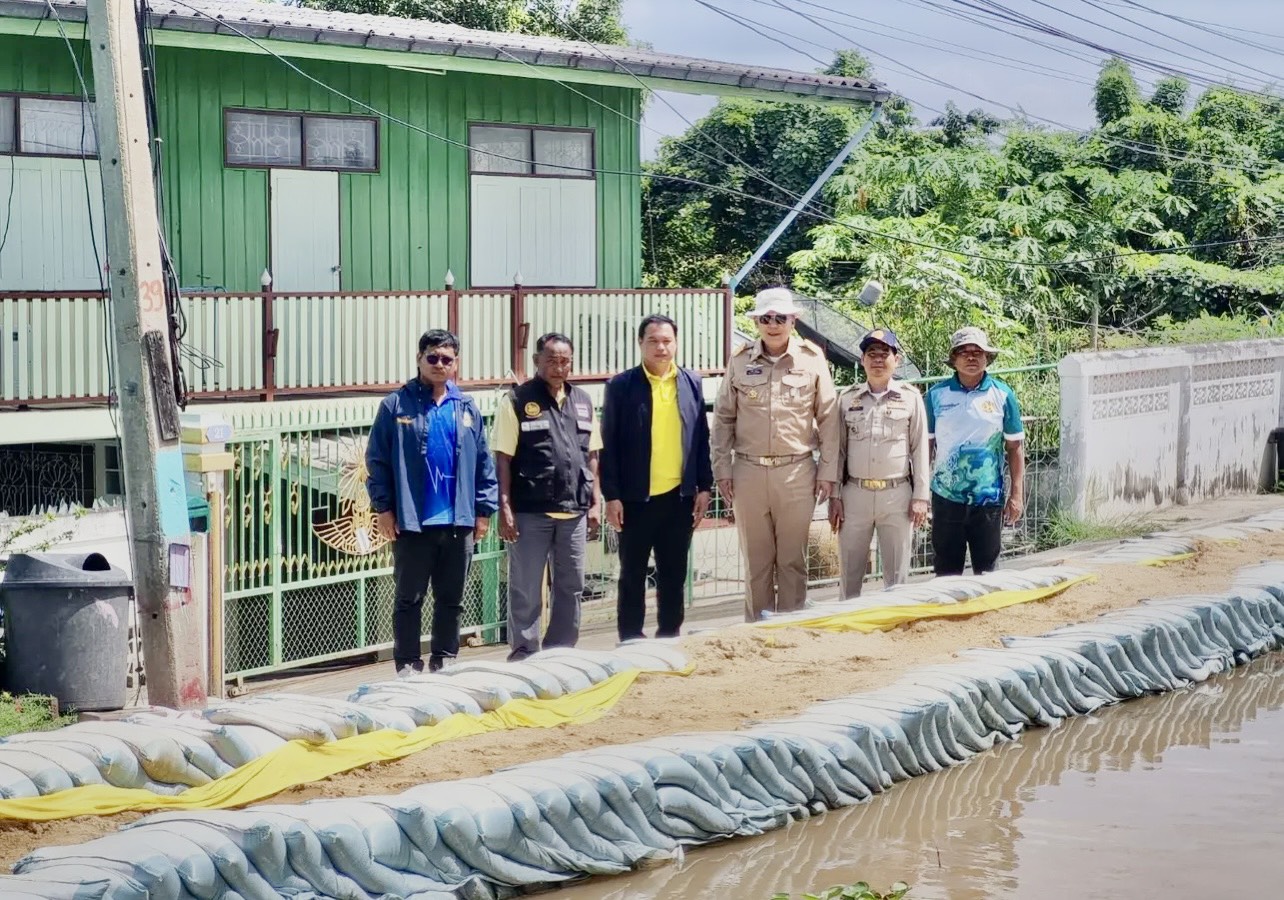 ลงพื้นที่ตรวจปริมาณน้ำและเยี่ยมให้กำลังใจการดำเนินการเสริมคันดินแนวป้องกันปริมาณน้ำล้นตลิ่ง