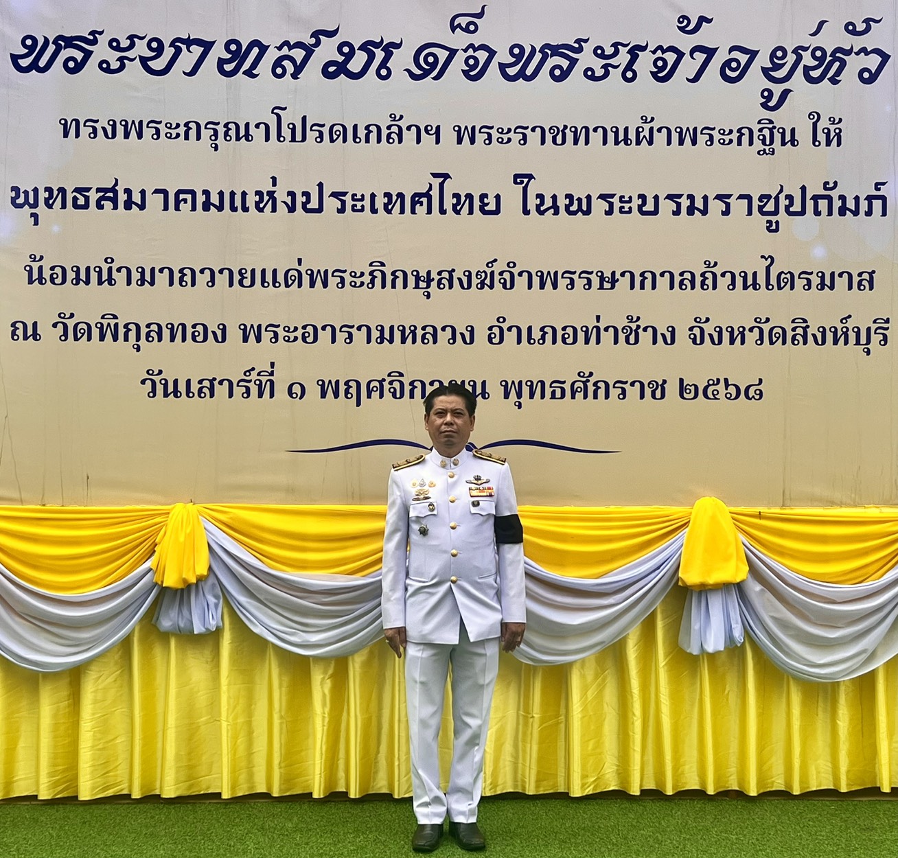 - นายฐิติพงศ์ วิชัยสาร นายอำเภอพรหมบุรี มอบหมายให้นายพุฒิชาติ จันทอง ปลัดอำเภอหัวหน้ากลุ่มงานบริหารงานปกครอง ร่วมเป็นเกียรติพิธีถวายผ้าพระกฐินพระราชทาน พุทธศักราช 2568 ณ วัดพิกุลทอง พระอารามหลวง ตำบลพิกุลทอง อำเภอท่าช้าง จังหวัดสิงห์บุรี โดย พุทธสมาคมแห่งประเทศไทย ในพระบรมราชูปถัมภ์ เป็นผู้ขอพระราชทานผ้าพระกฐินนำมาถวายพระสงฆ์จำพรรษา