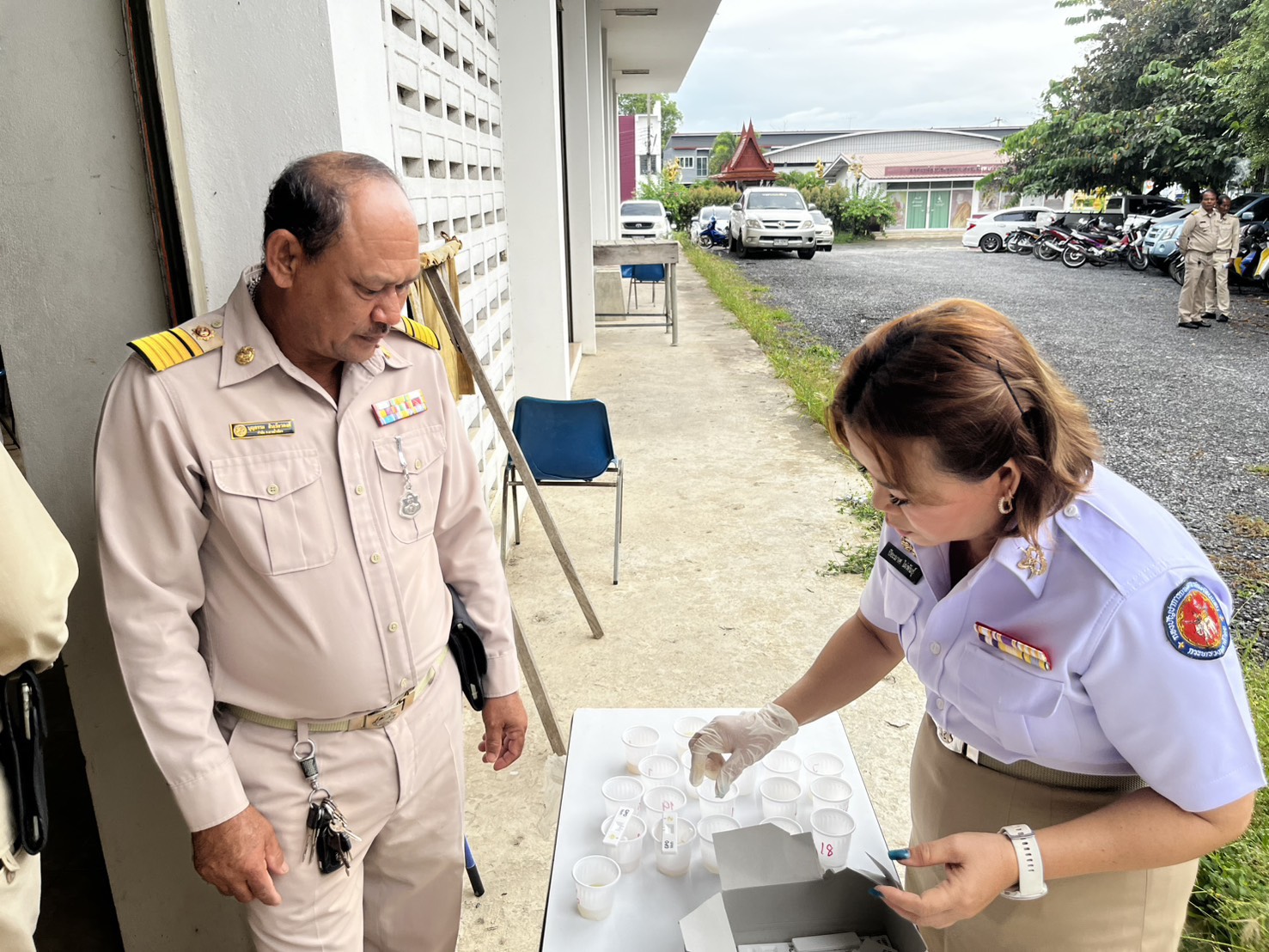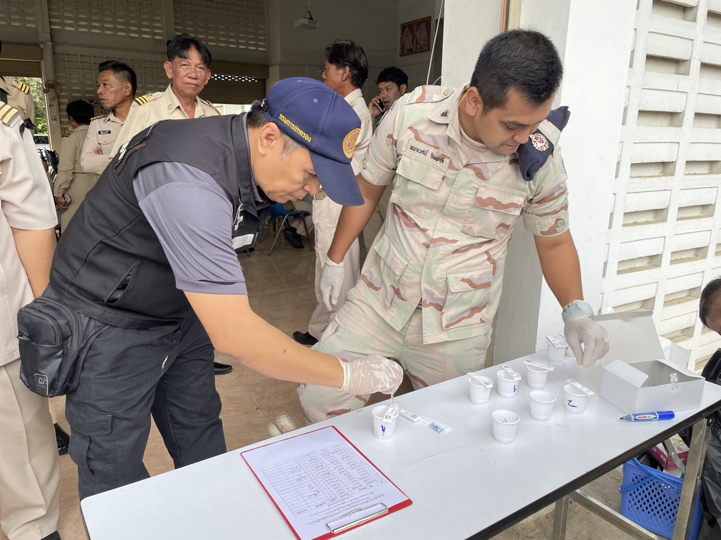 ตรวจหาสารเสพติดในร่างกายกำนัน ผู้ใหญ่บ้าน แพทย์ ผู้ช่วยฯ สารวัตรกำนัน จำนวน ๑๓๖ ราย