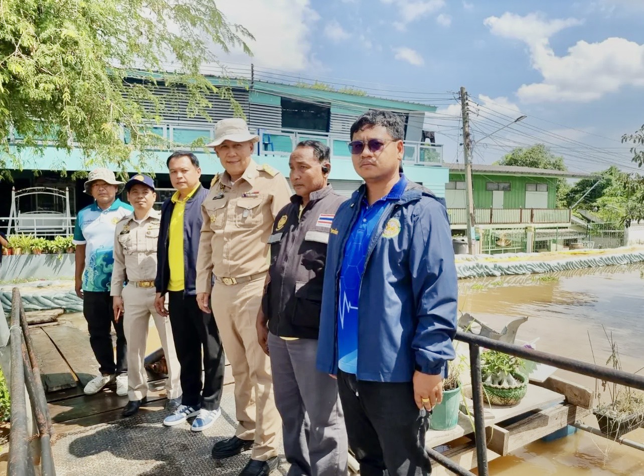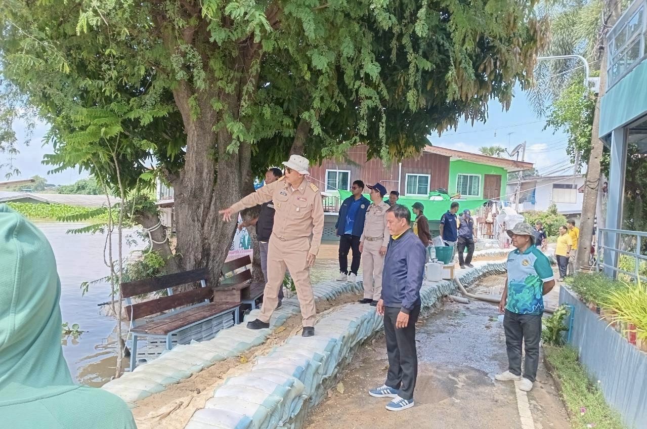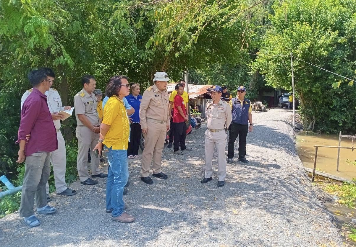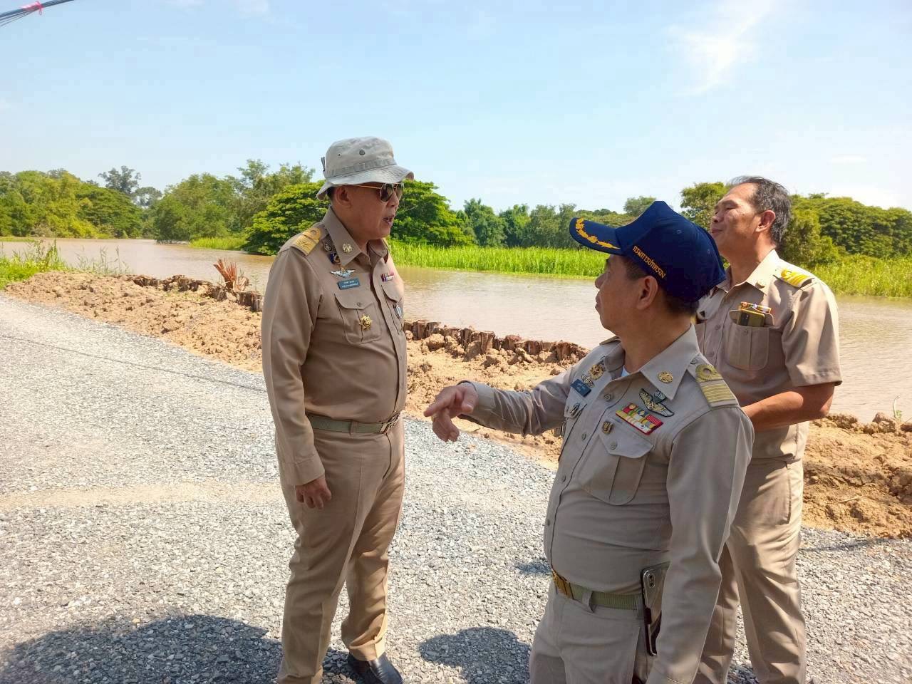 ลงพื้นที่ตรวจปริมาณน้ำและเยี่ยมให้กำลังใจการดำเนินการเสริมคันดินแนวป้องกันปริมาณน้ำล้นตลิ่ง